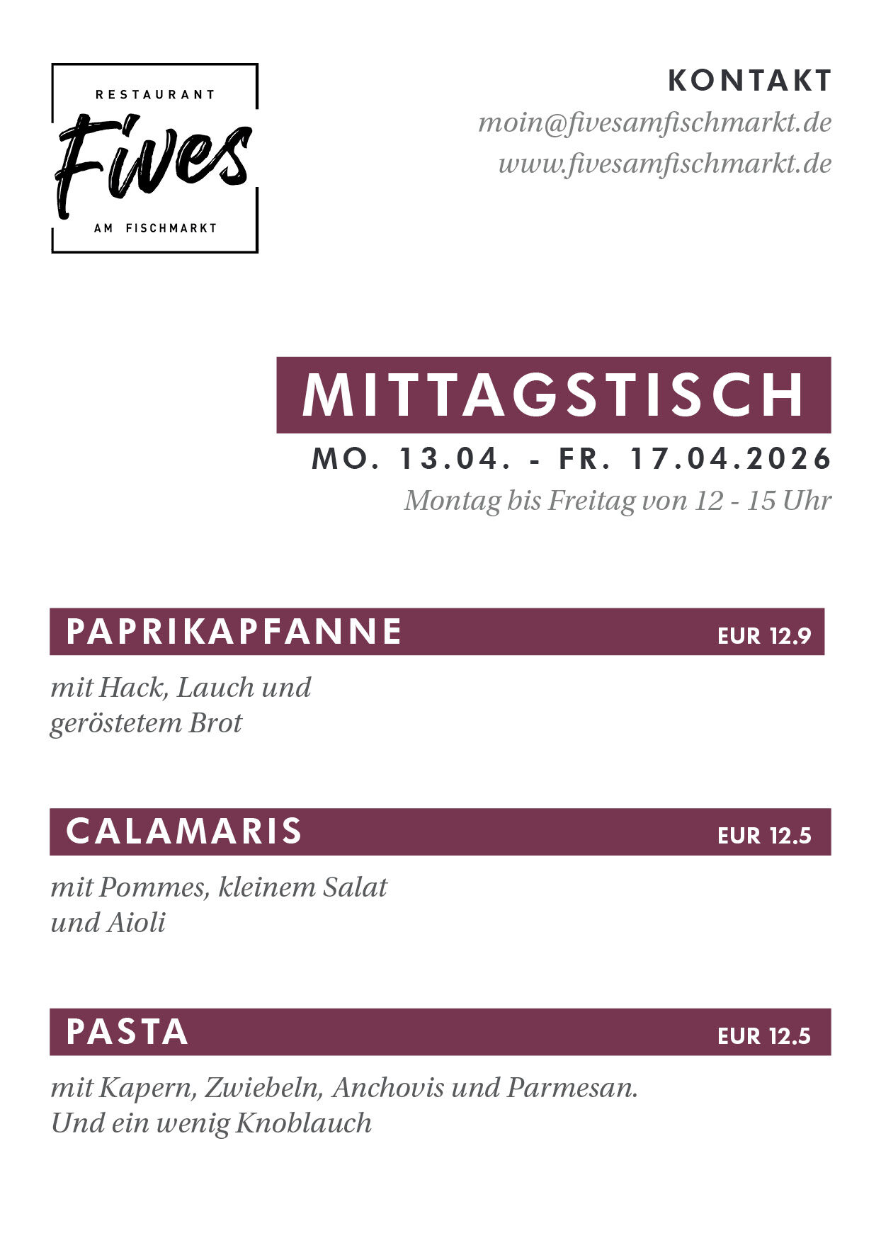 Erleben Sie im Fives am Fischmarkt kulinarische Vielfalt mit einem Hauch nordischer Eleganz. Unsere Küche steht für zeitlose Klassiker, frisch zubereitet und stets mit einem besonderen Anspruch an Qualität und Authentizität. Ob für den schnellen Mittagstisch, gemütliche Abende oder festliche Anlässe – wir bieten Ihnen ein gastronomisches Erlebnis.